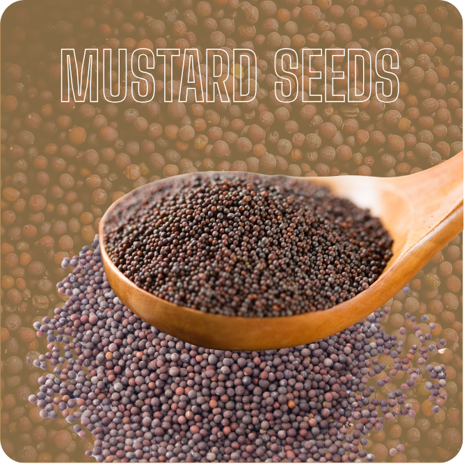Mustard Seeds, commonly known as Rai in India, are the small, round seeds of various mustard plants (Brassica nigra, Brassica juncea, and Brassica alba). These seeds are typically black, brown, or yellow and known for their pungent flavor and high oil content.